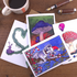 Four Cards: Christmas Card Koala, Happy Birthday Balloons, Purple Mushroom and Slug Love