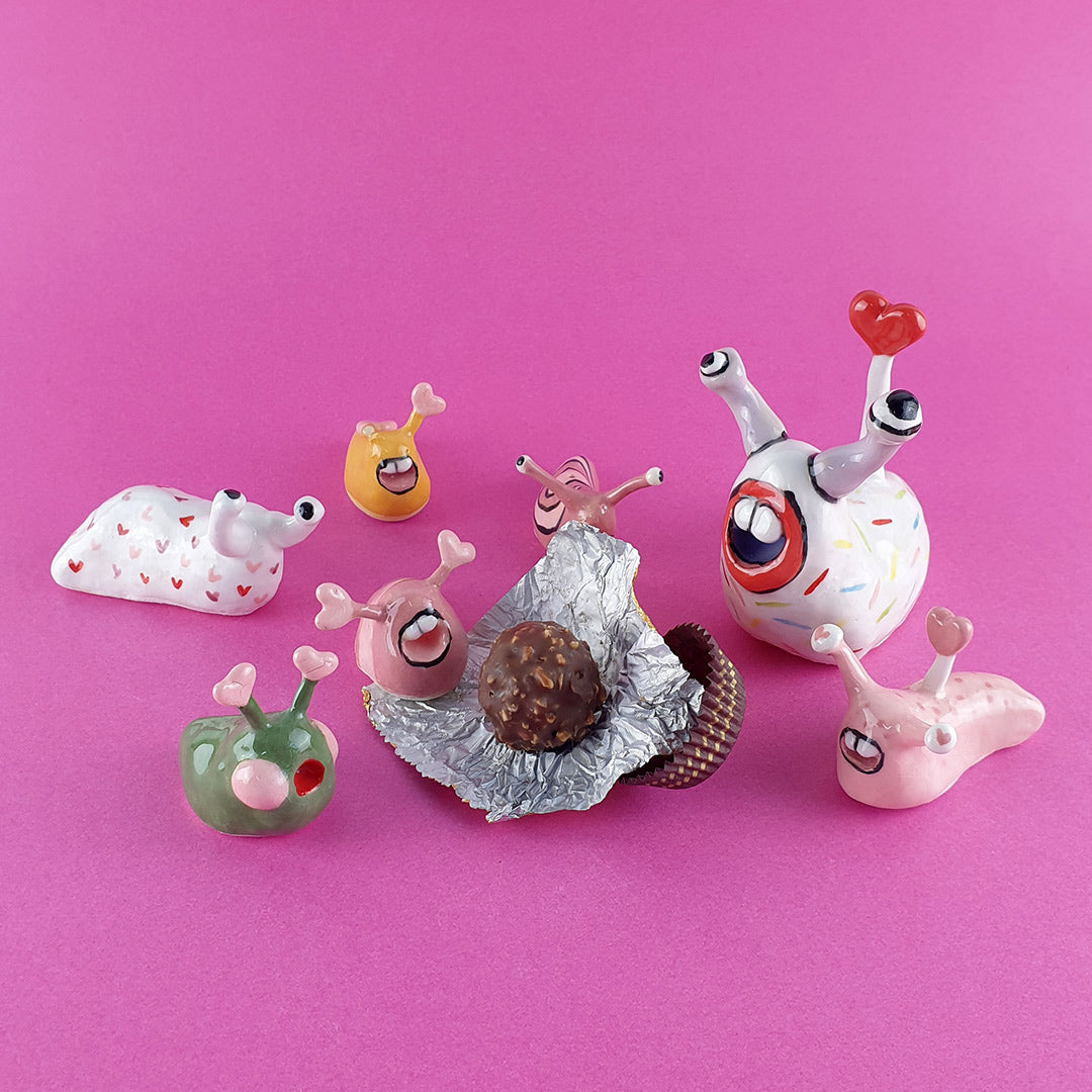 Turning these slugs into goofy characters got me through this very difficult time in my life, and when I finally made it back to Australia, I realized I had a mission. That mission was to make sure everyone has a little friend, a slug friend, a silly little blob that makes them smile and brings joy to their space, wherever they are.